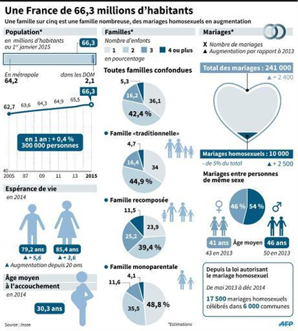 | Estimations 2014 de l'Insee sur la population française, la famille et les mariages |
