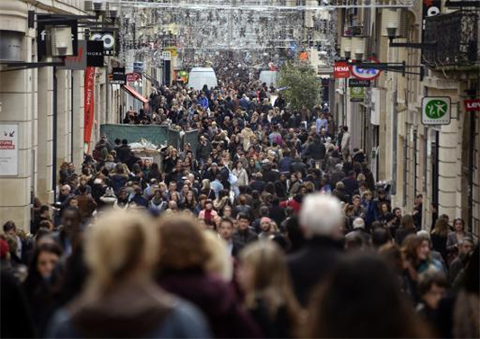 | Des passants dans la grande rue piétonne Sainte-Catherine à Bordeaux, le 8 janvier 2014. |