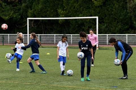 | De jeunes footballeuses lors d'un entraînement, le 18 avril 2018 à Grenoble. |