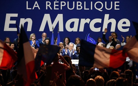 | Un meeting de La République en Marche ! pour les législatives, le 23 mai 2017 à Aubervilliers, près de Paris. |