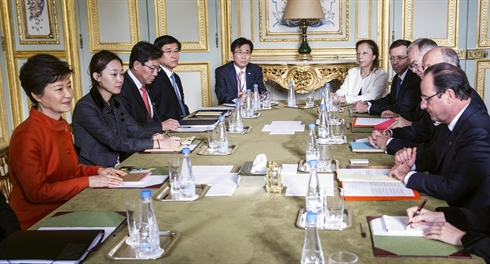 | Entretien entre le président français François Hollande et son homologue sud-coréenne, Park Geun-hye, le 4 novembre à l'Ély |