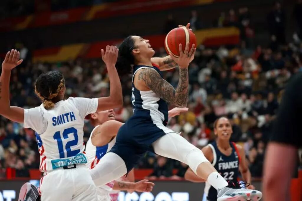 | Gabby Williams avec les Bleues contre Porto Rico au tournoi de qualification olympique le 8 février à Xi'an (en Chine). |