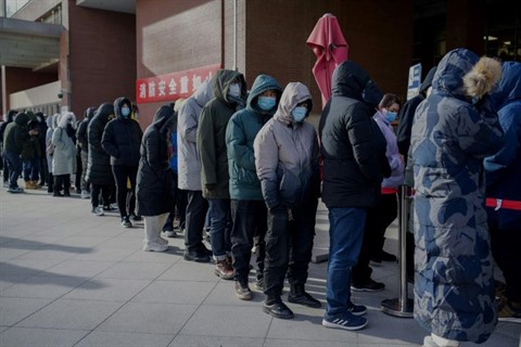| Des habitants font la queue pour être testés à Pékin le 29 décembre. |
