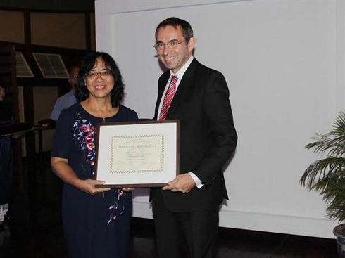 Les deux cadres honorés sont Nguyên Thanh Huyên, ex-chef adjointe du Département des relations internationales du ministère de l’Education et de la Formation et le Professeur Nguyên Huu Duc, vice-doyen de l’Université nationale de Hanoi.
