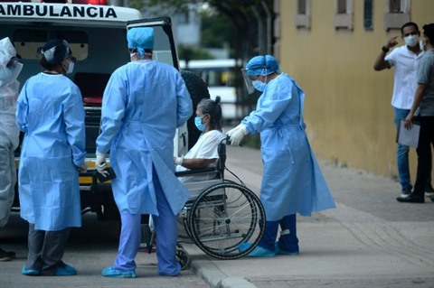 | Patient en chaise roulante dans un hôpital de Tegucigalpa (Mexique) le 28 octobre. |