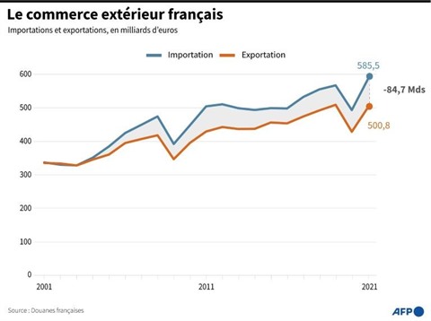 Le déficit commercial de la France pourrait en outre continuer à se creuser en 2022.