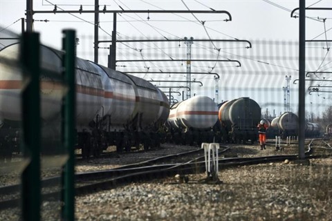 | Trains de hydrocarbures à la gare de Sibelin, à Lyon, le 13 mars 2017. |
