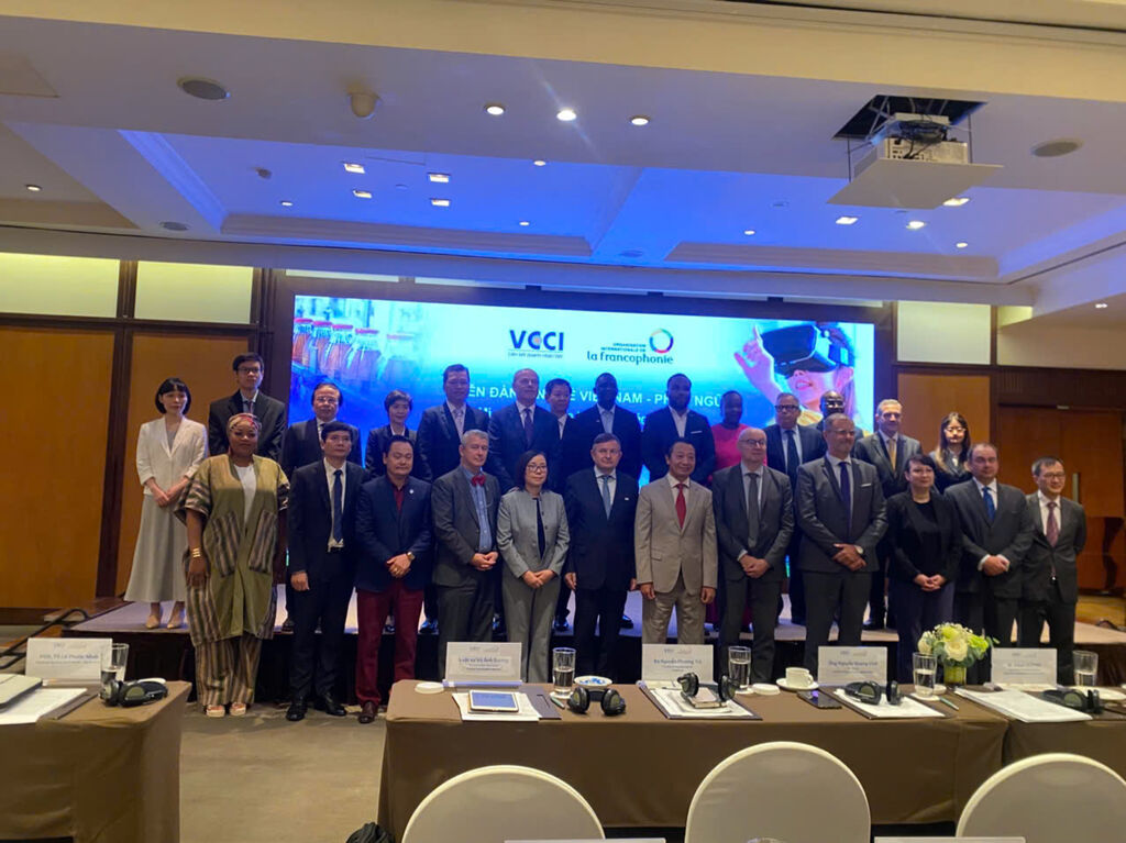 | Dirigeants de l’OIF, de la VCCI, représentants des ambassades francophones, ministères vietnamiens et d’entreprises francophones et vietnamiennes participant à l’événement. |