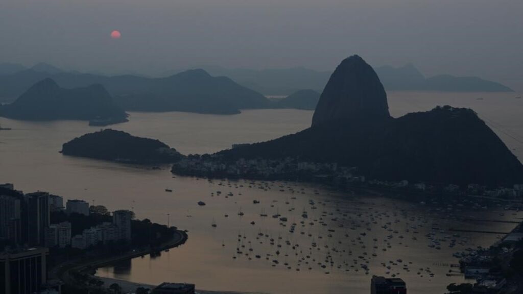 | Levée du soleil sur Rio de Janeiro, au Brésil, pollué par la fumée des feux de forêt en Amazonie, le 9 septembre. |