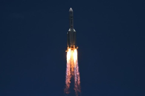 | La fusée Longue-Marche 5 est lancée depuis le centre spatial de Wenchang (Sud de la Chaine), le 23 juillet. |