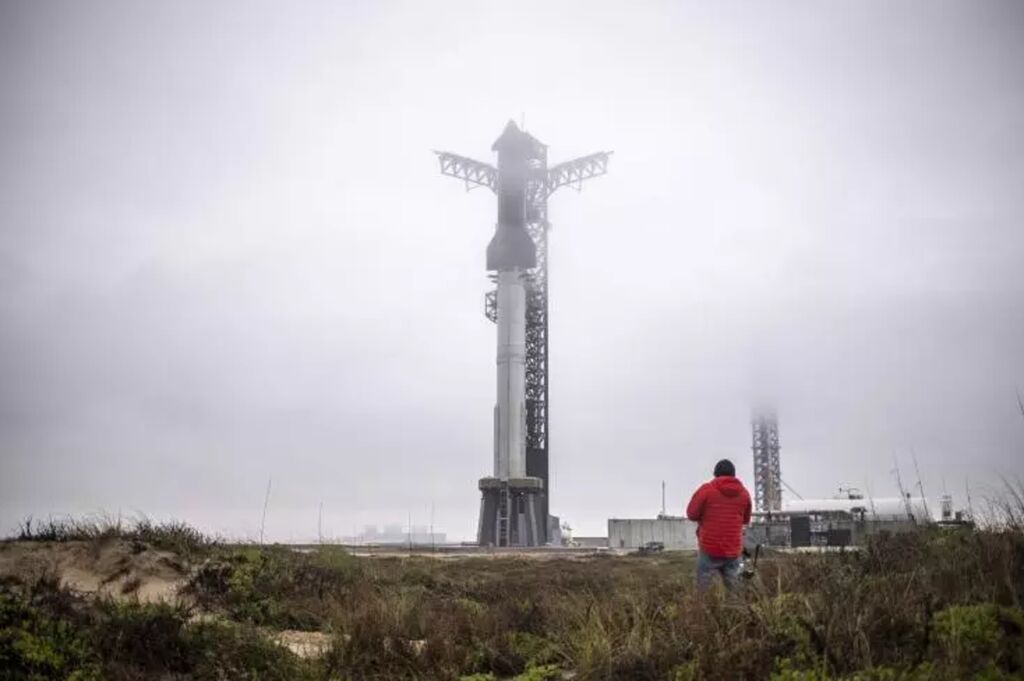 | La fusée Starship de SpaceX sur son pas de tir, le 14 janvier. |
