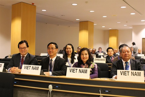 | Des représentants du Vietnam lors de la 107e session de la conférence internationale du travail à Genève, en Suisse. |