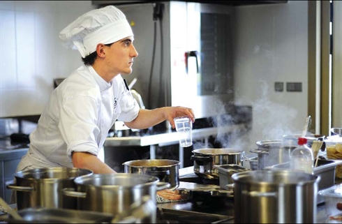 Vêtus de leurs uniformes blancs, l’incontournable toque de cuisinier sur le crâne, les étudiants s’affairent autour des grandes tables où est disposée toute la panoplie des ustensiles de cuisine.