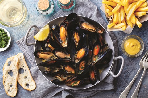 De la mer du Nord viennent quantité de produits qui sont mis à l’honneur dans la gastronomie belge. Les poissons bien sûr, avec des recettes comme la sole ostendaise ou l’anguille au vert, mais aussi la petite crevette grise déclinée en quantité de recettes, de la croquette de crevettes à la tomate farcie aux crevettes ou la salade du même nom. Le petit crustacé agrémente aussi bon nombre de sauces qui garnissent les plats belges. Et bien sûr, il ne faut pas oublier le célébrissime "moules-frites" qui est à la Belgique ce que la choucroute est à l’Allemagne, le couscous aux pays du Maghreb ou la paëlla à l’Espagne.