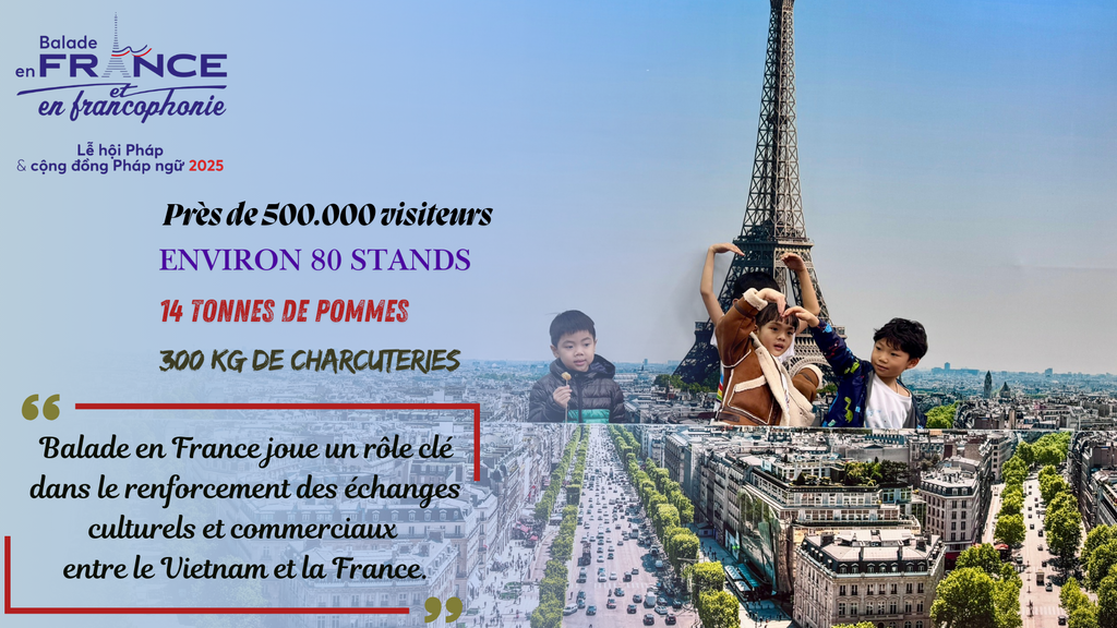 L’an dernier, "Balade en France" avait réuni environ 400.000 visiteurs. Poursuivant sur sa lancée, l’édition 2025 en a attiré près de 500.000 tout au long du dernier week-end de mars. La foule, impatiente, faisait la queue pour goûter et acheter des produits français, déjà bien présents dans les foyers vietnamiens. Ce franc succès, source de "réel bonheur pour les organisateurs", témoigne du grand potentiel de la coopération bilatérale dans le secteur agricole et agroalimentaire.