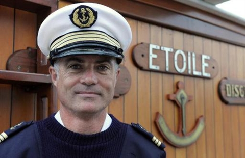 | Le lieutenant de la goélette de la Marine, Philippe Verdier, le 18 mai dans le port de Brest. |