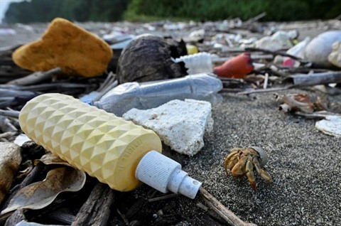| Un bernard-l'ermite marche sur une plage pleine de pollution plastique sur l'île de Gorgonilla, à côté de La Gorgone, dans l'océan Pacifique au large de la côte sud-ouest de la Colombie, le 1er décembre. |
