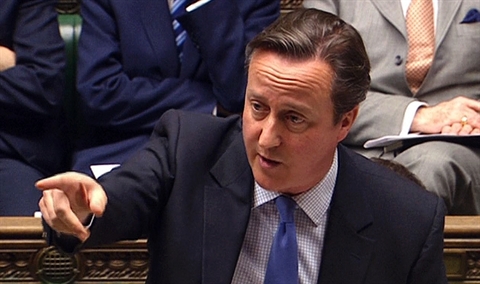 | Le Premier ministre britannique David Cameron au parlement, le 2 décembre. |