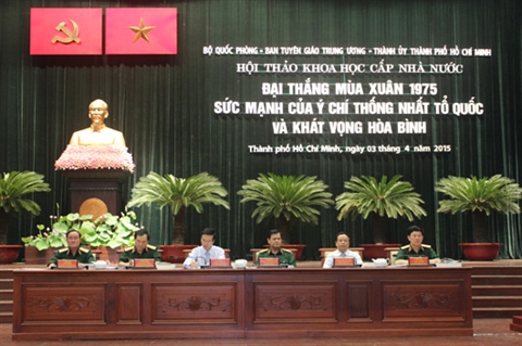 | Un symposium sur «La grande victoire du Printemps 1975 - la force de la volonté de réunifier le pays et de l’aspiration à la paix» qui s’est ouvert vendredi 3 avril à Hô Chi Minh-Ville (Sud). |