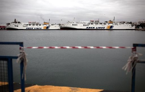 | Des ferries à quai dans le port du Pirée, à Athènes, pendant une grève générale de 24 heures, le 27 novembre en Grèce. |