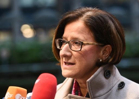 | La ministre autrichienne de l'Intérieur, Johanna Mikl-Leitner, à Bruxelles. |
