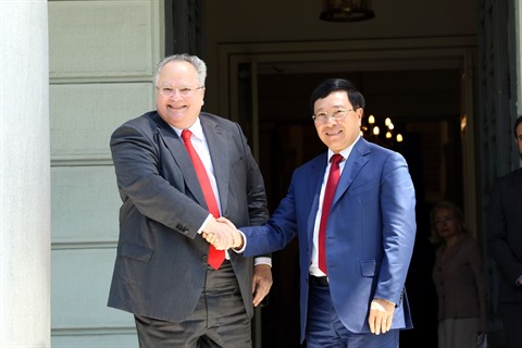 Au cours de sa visite, le vice-Premier ministre et ministre des Affaires étrangères Pham Binh Minh a rencontré le vice-Premier ministre grec et ministre de l'Économie et du Développement, Giannis Dragasakis.