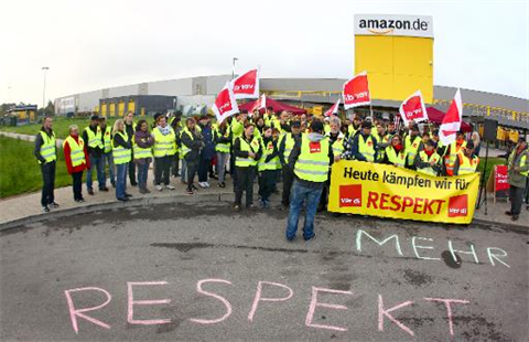Le puissant syndicat allemand des services Verdi réclame depuis plus d'un an et demi une augmentation de salaire pour les employés d'Amazon. Ils sont à l'heure actuelle rémunérés selon la convention du secteur logistique, et souhaitent passer à celle de la distribution. Un tel alignement leur permettrait de gagner environ deux euros bruts de plus par heure.