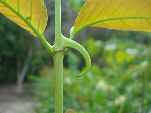 La griffe du chat est une plante grimpante croissant jusqu’à 30 m, à tiges atteignant 20 cm de diamètre, à grandes feuilles brillantes et à épines acérées.