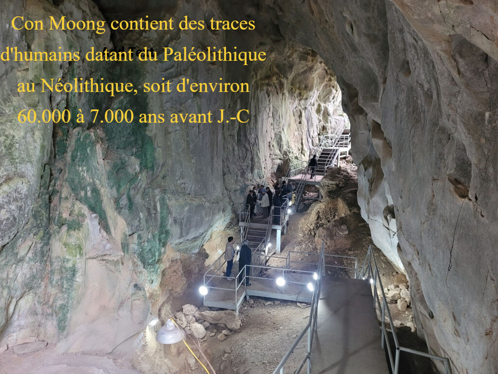Con Moong a été fouillée à plusieurs reprises et est considérée comme le site le plus ancien du pays, contenant des traces d'humains datant du Paléolithique au Néolithique, soit d'environ 60.000 à 7.000 ans avant J.-C.