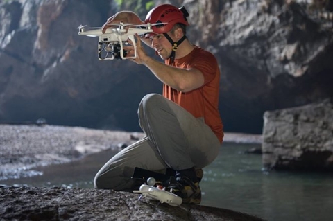 | Ryan Deboodt utilise un drone équipé d’une caméra dans la grotte de Son Doong. |