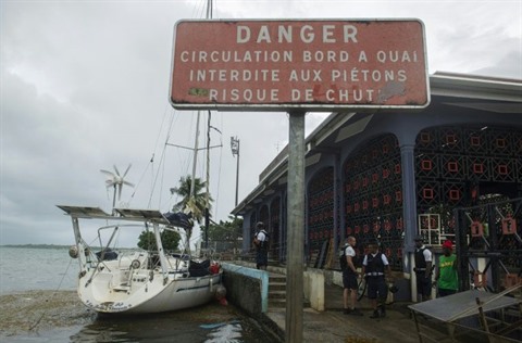 | Des policiers sur une plage de la Guadeloupe, le 6 septembre. |