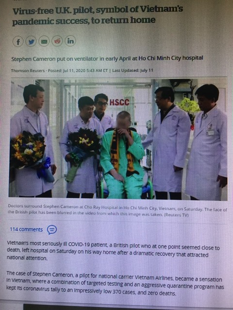 Selon l’article paru le 11 juillet sur le site web de CBC.ca, le cas de ce pilote du transporteur aérien national Vietnam Airlines, a fait sensation au Vietnam, où une combinaison de tests ciblés et un programme de quarantaine ont maintenu le nombre de cas de coronavirus à 370, sans aucun cas de décès pour le moment.