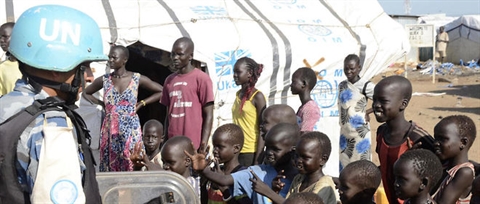 | Des soldats de l'ONU sont déployés au Sud-Soudan pour aider la population victime de la guerre civile. |
