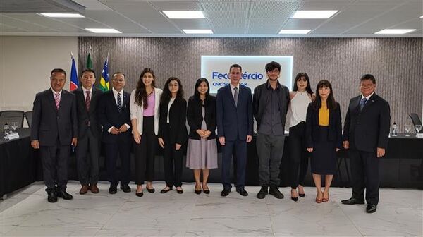 | L’ambassadrice du Vietnam au Brésil et en Guyane, Pham Thi Kim Hoa (en tunique rouge), lors de la cérémonie de présentation de ses lettres de créance. |