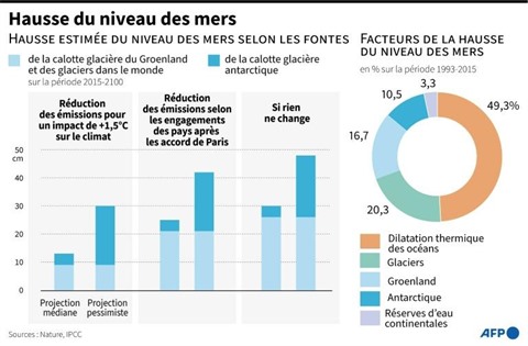 La fonte des glaces contribuerait ainsi à faire monter les océans de 13 centimètres d'ici 2100, contre 25 centimètres selon les projections actuelles. Des incertitudes demeurent toutefois concernant l'Antarctique.