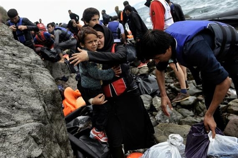 | Migrants et réfugiés à leur arrivée, le 30 septembre sur l'île grecque de Lesbos |