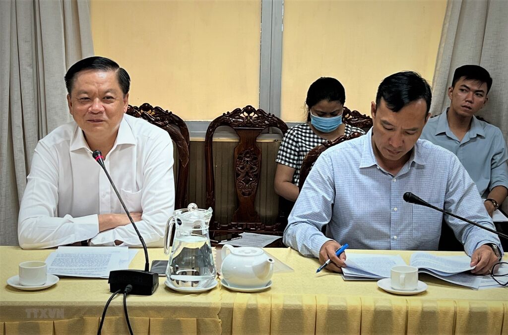 | Duong Tân Hiên (gauche), vice-président permanent du Comité populaire de la ville de Cân Tho, s'exprime lors de la séance de travail. |