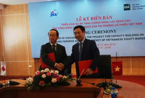 Le projet de renforcement des capacités pour améliorer l'équité et la transparence du marché boursier du Vietnam entre les gouvernements du Japon et du Vietnam sera mis en œuvre pendant 3 ans, à partir de 2019. Le Japon aidera le Vietnam à renforcer la capacité du Comité boursier d'État, des Services de transactions boursières de Hanoï et de Hô Chi Minh-Ville dans les activités de surveillance du marché et des intermédiaires, la gestion de la cotation et de l'émission des actions, et à sensibiliser les chefs d'entreprises à protéger les investisseurs.