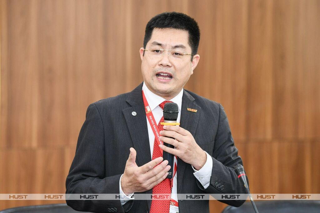 | Le Professeur associé Phan Trung Nghia, Institut des sciences de chimie de l’HUST, également chef du projet du côté vietnamien, présente les étapes importantes du projet. |