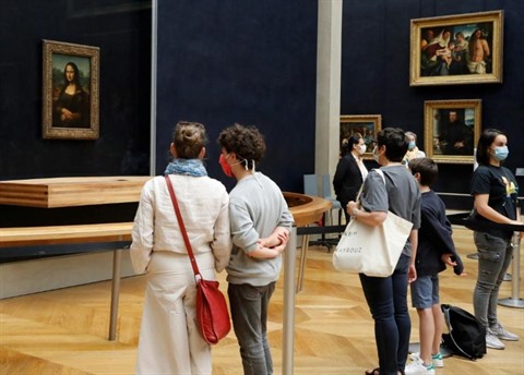 | Des visiteurs devant La Joconde, à Paris, au Louvre, le 6 juillet, premier jour de réouverture du musée après trois mois et demi de fermeture. |