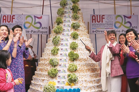 | Un gâteau de 25 étages pour célébrer le 25e anniversaire de l’AUF. |