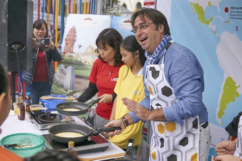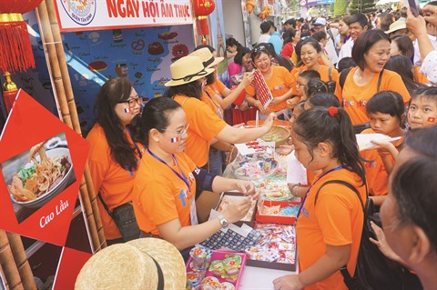 | Un stand présentant la gastronomie lors de la fête de la Francophonie à Hô Chi Minh-Ville. |
