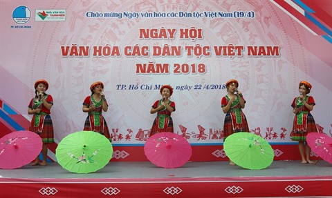 | Un spectacle de chant donné par des jeunes de Hô Chi Minh-Ville pour vanter les belles valeurs culturelles des ethnies vietnamiennes. |