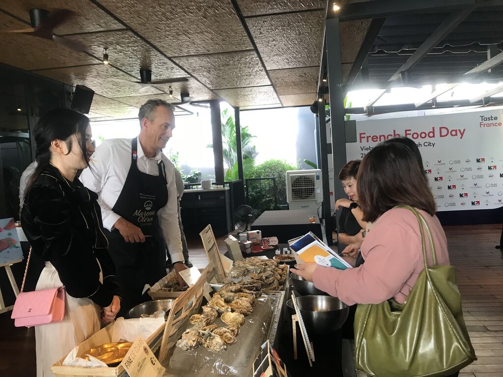 À cette occasion, le chef Sakal Phoeung a présenté au public vietnamien des réalisations culinaires mettant en scène les huîtres et le saumon français.
