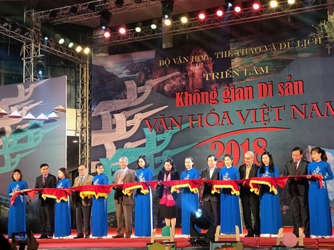 | La cérémonie d'ouverture de l'exposition sur "L’espace des patrimoines culturels vietnamiens 2018". |