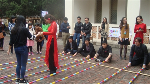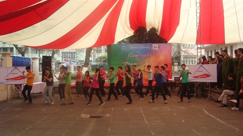 Comme l’indique son nom, «Couleurs culturelles», le programme 2016 s’est présenté comme un tableau vif des cultures francophones, avec de riches activités. Quatre espaces avaient été aménagés : Espace «crêpe», Espace de spectacles, Espace culturel et Espace de musiques et danses folkloriques. Les participants ont pu déguster des crêpes faites sous leurs yeux par des étudiants vietnamiens, avec l’aide de Lucile. Les stands de l’Espace culturel, représentant 18 pays francophones (Haïti, Vietnam, Suisse, Bulgarie, Belgique, Monaco, France, Mozambique, Cameroun, Roumanie, Hongrie, Sénégal, Cambodge, Grèce, Maroc, Laos, Canada et Arménie), étaient une partie importante de ce programme. Les participants ont aussi admiré des danses de pays francophones, écouté des chansons, participé à des jeux traditionnels du Vietnam, d’Haïti et du Laos, dont la danse aux perches.