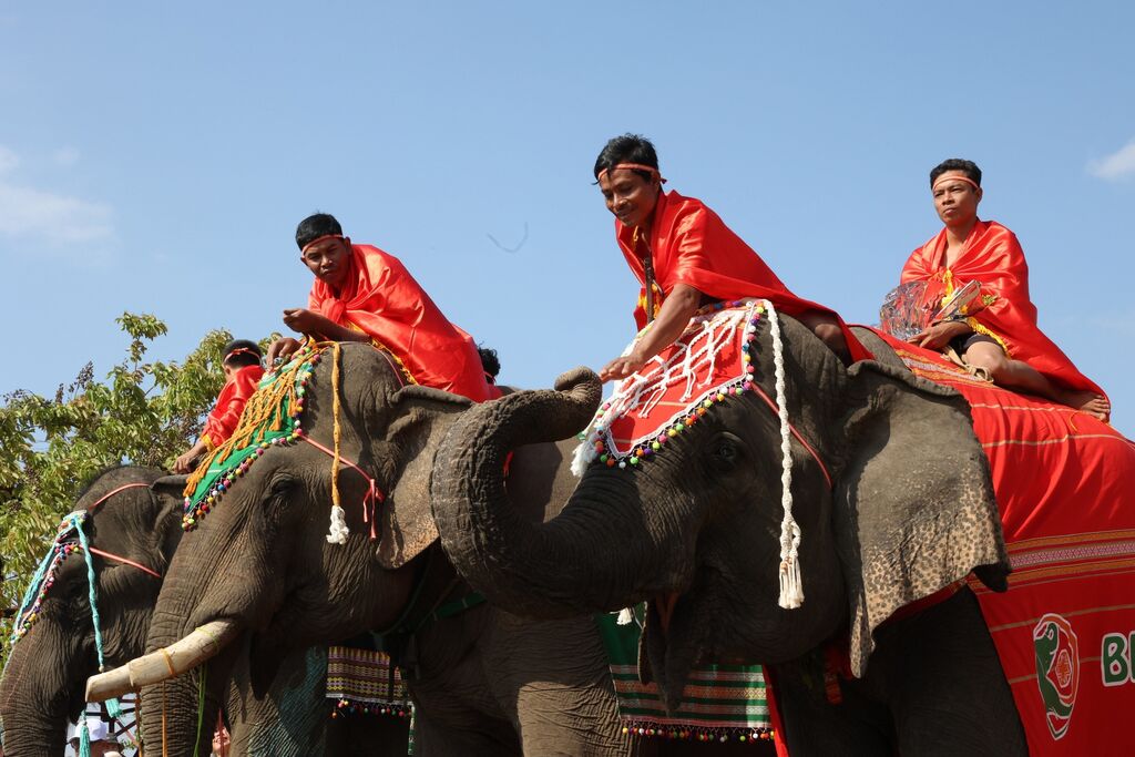 | Éléphants de Dak Lak participant à une fête culturelle traditionnelle. |