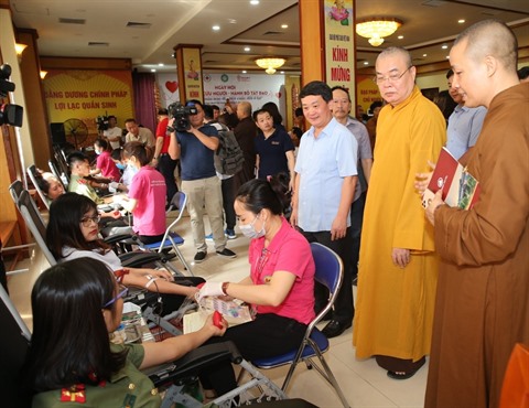 Samedi 13 juin, au siège de l’Église bouddhique du Vietnam à Hanoï, 300 dignitaires et bouddhistes ont donné leur sang pour sauver des vies. Une autre collecte de sang a été organisée les 13 et 14 juin à la Faculté de médecine de Hai Phong (Nord) où les donneurs de sang exemplaires de 2020 ont été mis à honneur.