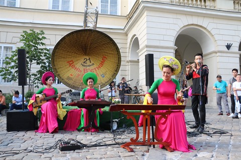 | Un spectacle musical traditionnel lors de la Journée vietnamienne dans la ville de Lviv à l’Ouest de l’Ukraine. |