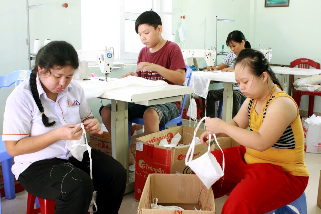 | Un cours d'apprentissage en vafeur de victimes de l'agence orange/dioxine à Dà Nang (Centre). |
